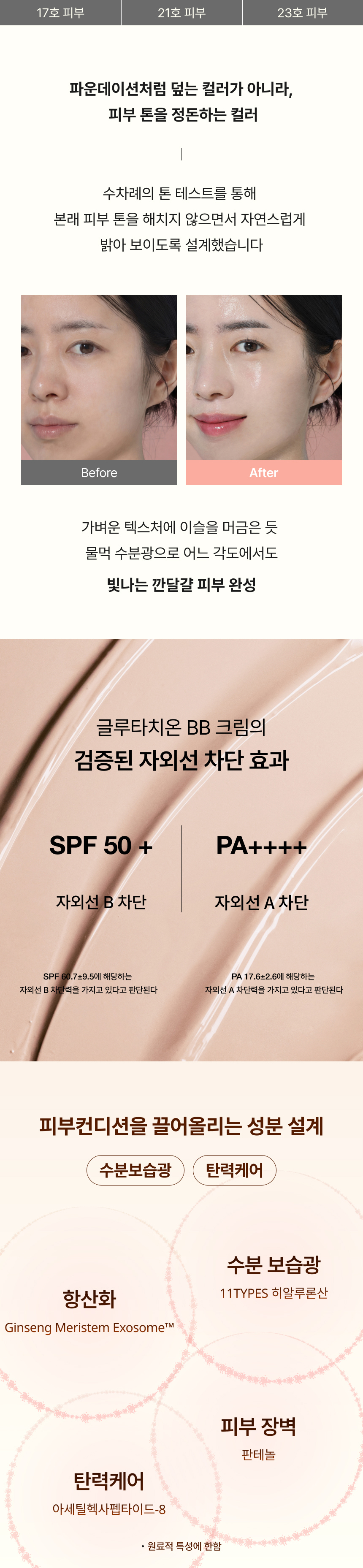 파운데이션을 안 발라도 될 정도로 피부 표현이 자연스러워요. 유효 성분이 고르게 펴 발리는 느낌이라 군데군데 뜨는 부분 없이 얼굴 전체가 균일해 보여서 만족스러워요. 파데프리 제품 찾고 있던 분들께 잘 맞을 것 같아요.
